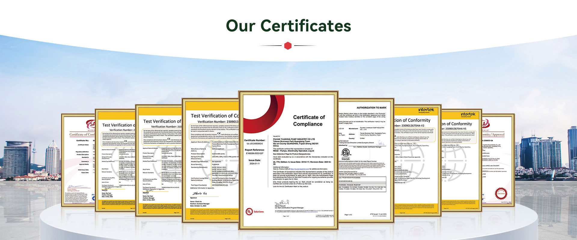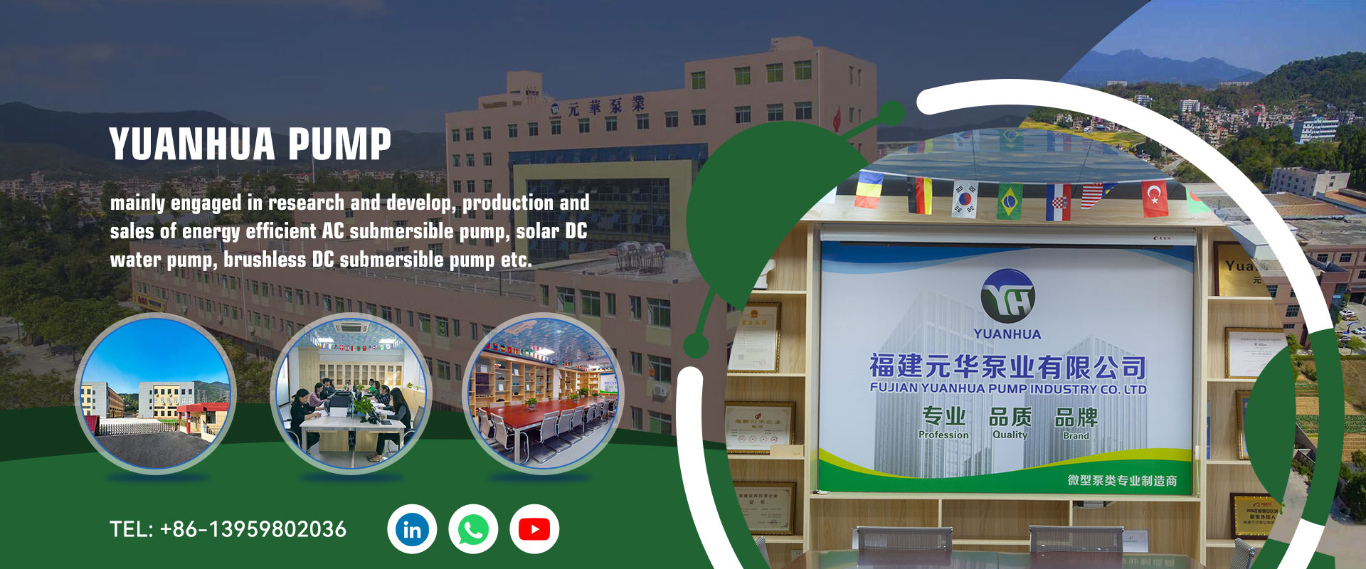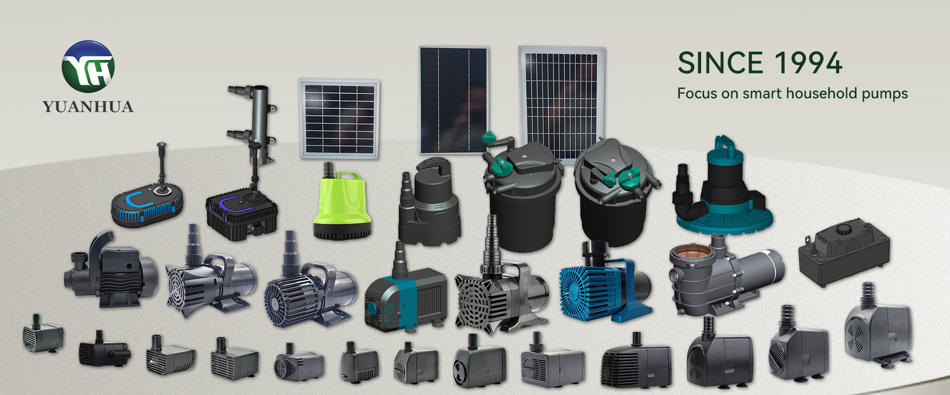 Most azonban leányvállalata – a YUANHUA főként energiahatékony váltakozó áramú búvárszivattyúk, szoláris egyenáramú vízszivattyúk, kefe nélküli egyenáramú búvárszivattyúk stb. kutatásával és fejlesztésével, gyártásával és értékesítésével foglalkozik. Termékeinket széles körben használják kézműves szökőkutakban, kerti tájakban, kerti öntözésben, autókban, automatikusan vízkeringtető berendezésekben, napelemes termékekben, hűsítőkváriumban lévő halfürdőkben, légkutakban. Ezenkívül új termékeket adunk hozzá, például leeresztő szivattyút mosógéphez és RO szivattyút víztisztítóhoz.